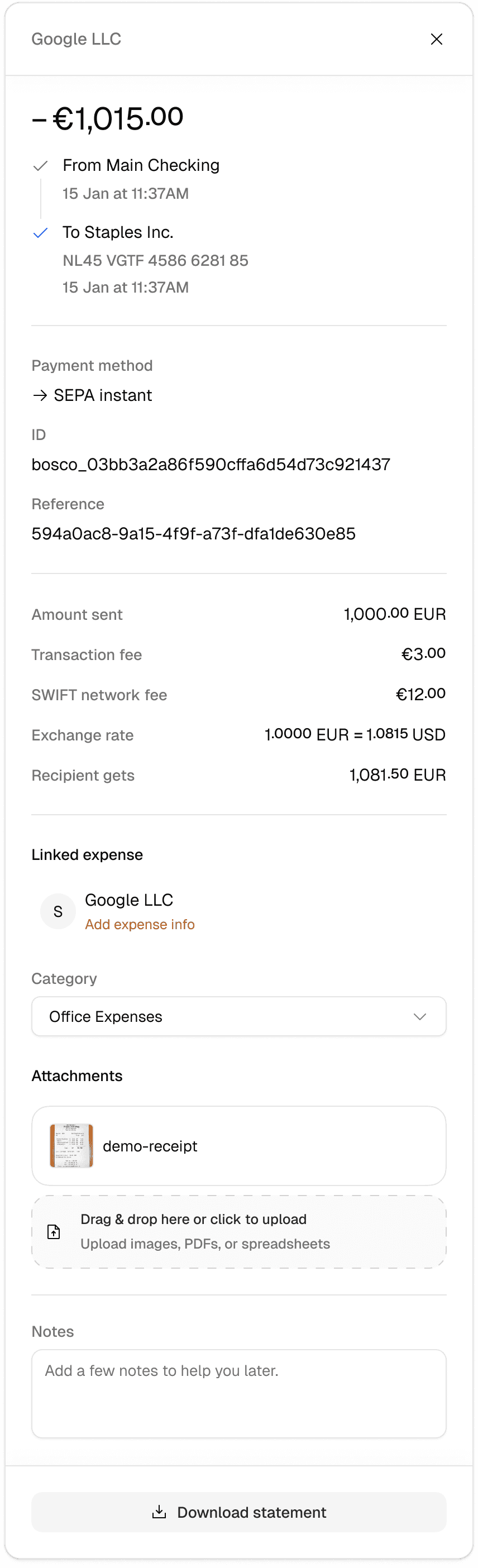 Whether you are sending money to your team, supplier, or business account, with GoDutch it arrives in the right place within seconds.
