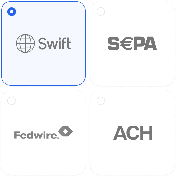 SEPA, SWIFT, ACH en Fedwire. Veilig, snel en zonder gedoe.