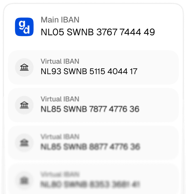 With GoDutch, you manage your payments proactively. Easily initiate direct debits from your own account and organise your cash flows with separate virtual IBANs.