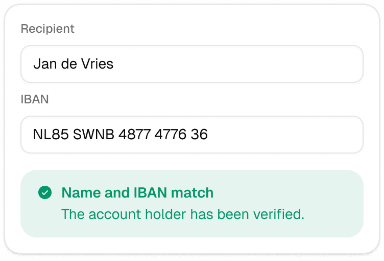 Whether you're sending money to your team, supplier, or business account, with GoDutch it's at the right place within seconds. No waiting times, no complicated hassle; just sorted instantly.